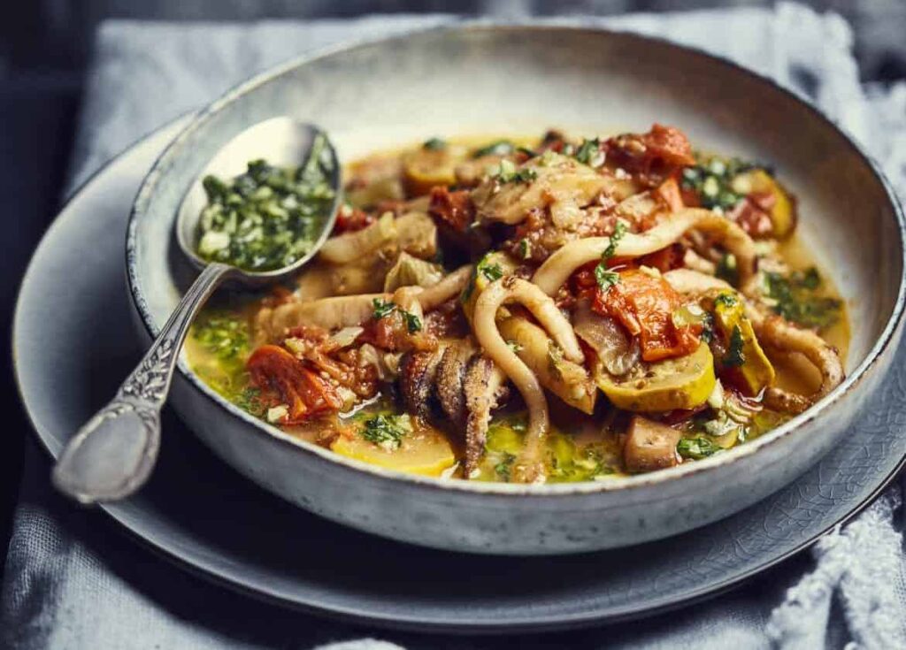Quand la seiche est cuite et la sauce aboutie, sortir du feu.